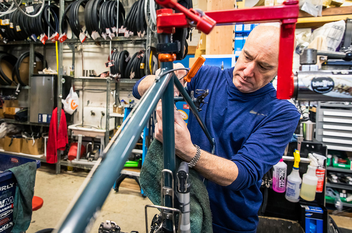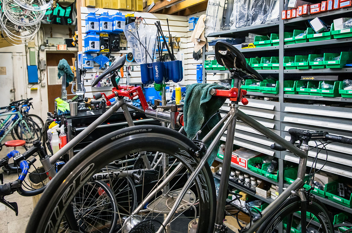 Custom Bicycle Building: Your dream and our passion. Custom building is a specialty, and it requires an experienced hand. Every fitting and component will be set, adjusted, pre-stressed, and torqued. Cables and handlebar tape are carefully measured and installed. All frames and forks are fully prepared in-house, to assure years of maximized performance.